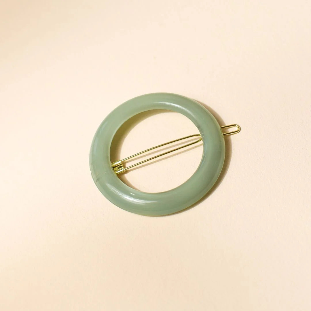 Voeg een vleugje frisheid en delicatesse toe aan uw kapsels met deze ronde Vert d'Eau haarspeld. Het strakke ontwerp en de zachte kleur maken het tot het ideale accessoire om je looks gemakkelijk te verfraaien. Deze haarspeld is zorgvuldig vervaardigd uit celluloseacetaat en metaal en is zowel lichtgewicht als duurzaam. Perfect voor kort tot halflang haar en wordt geleverd met een kartonnen achterkant.
