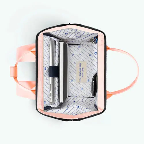 Het veilige laptopvak biedt plaats aan laptops tot 15 inch, terwijl de gewatteerde, ademende schouderbanden optimaal comfort garanderen, zelfs tijdens lange dagen. Waterafstotend en veganistisch, is deze tas bestand tegen onverwachte omstandigheden en blijft hij trouw aan jouw waarden. De bevestigingsriem voor bagage maakt hem bovendien de perfecte reisgenoot voor korte tripjes.