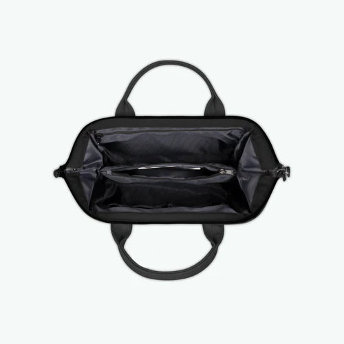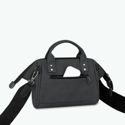 Compact maar toch slim, met een overzichtelijke binnenvoering met een ritsvak, een scheidingswand en een karabijnhaak voor sleutels. De veganistische, waterafstotende stof garandeert optimale duurzaamheid, ongeacht het weer.