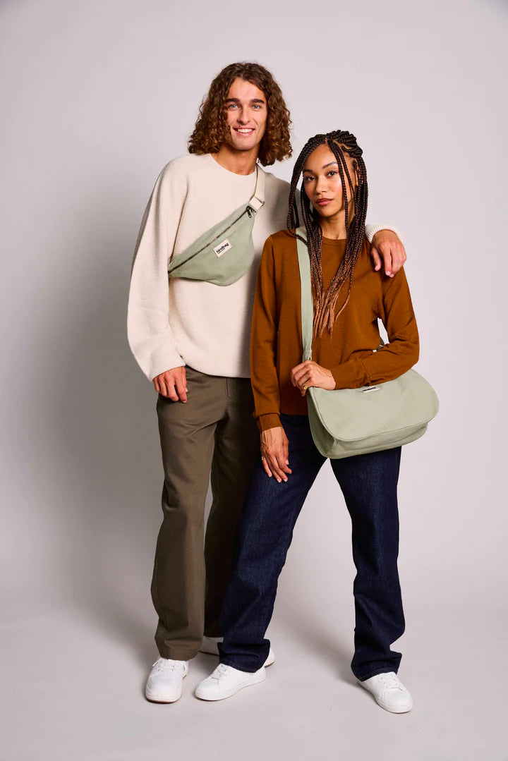 Deze heuptas is gemaakt van extra dik biologisch katoen , behoudt zijn vorm, beschermt je spullen en is bestand tegen lichte regen. Een praktische en verantwoorde keuze.