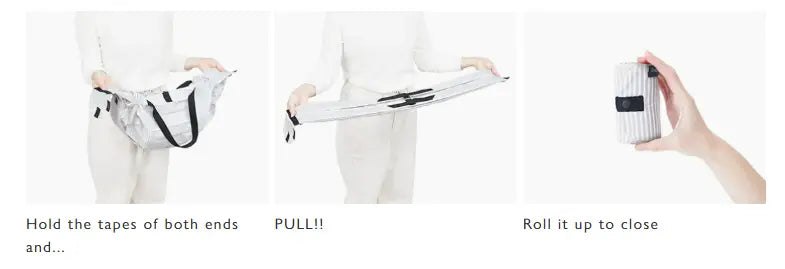 Na gebruik kunt u de opening eenvoudig aan beide uiteinden dichttrekken . Een simpele en effectieve manier om hem moeiteloos op te bergen.