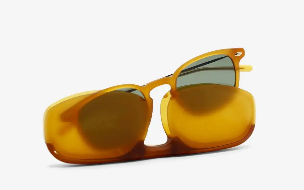 Voeg een vleugje licht toe aan je look met de Alma Honey zonnebril van Nooz Optics . Hun doorschijnende honingkleurige montuur combineert retro-elegantie met moderniteit, voor een stijl die tegelijkertijd zacht, gedurfd en ronduit zonnig is.