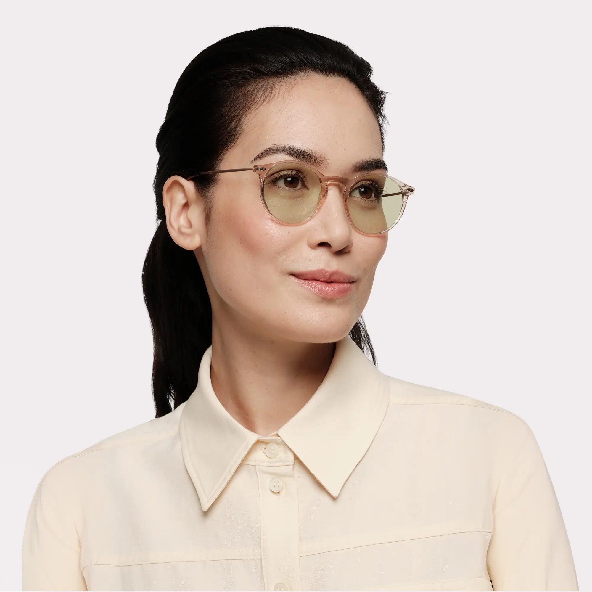 Met hun ronde montuur en trendy terracotta kap belichamen deze brillen de perfecte balans tussen verfijnd design en technische innovatie. Ze zijn ultralicht en ontworpen om lang mee te gaan, zodat u ze elke dag stijlvol en comfortabel kunt dragen.