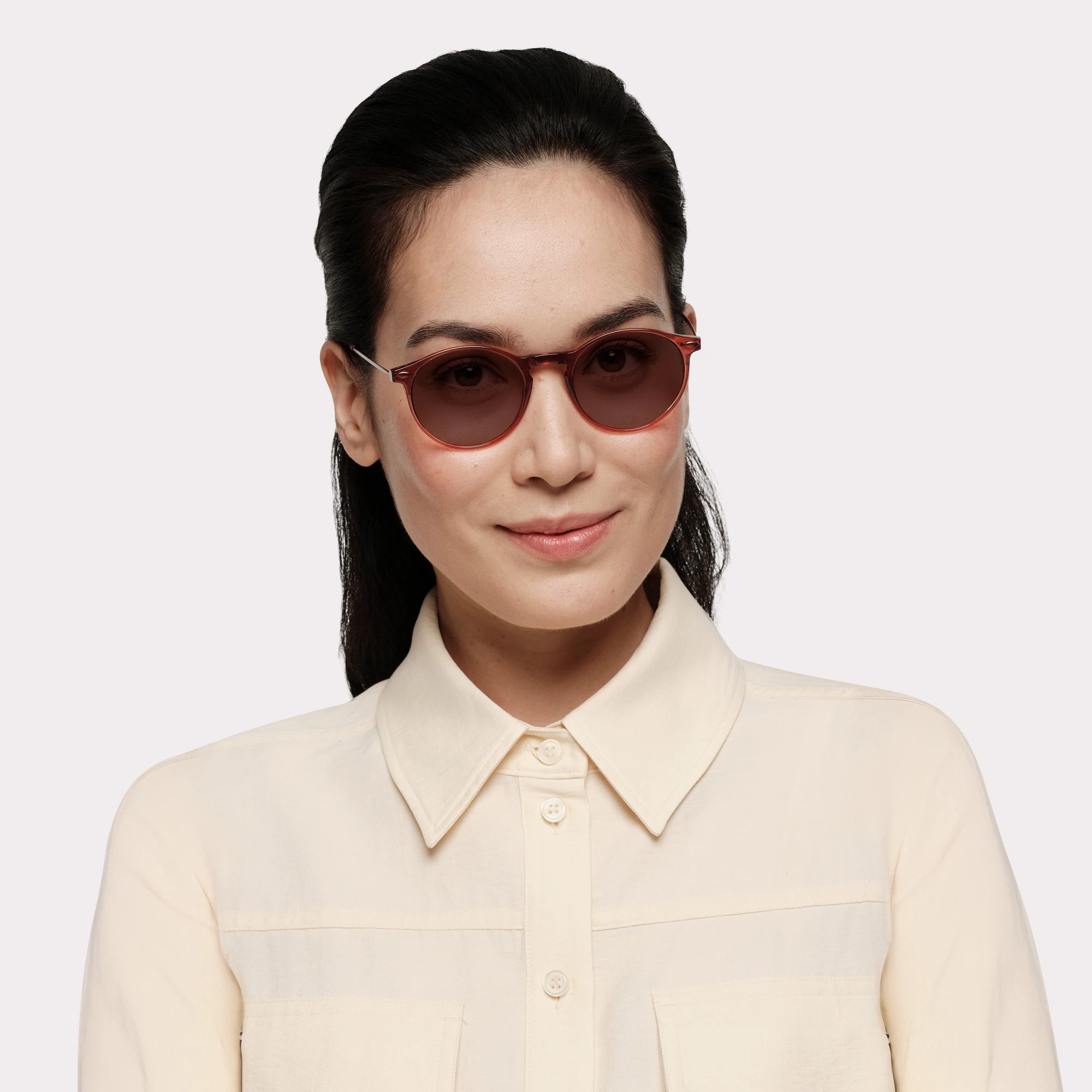 Met hun ronde montuur en trendy terracotta kap belichamen deze brillen de perfecte balans tussen verfijnd design en technische innovatie. Ze zijn ultralicht en ontworpen om lang mee te gaan, zodat u ze elke dag stijlvol en comfortabel kunt dragen.