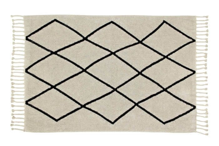 Met zijn eenvoudige, moderne geometrische patroon doet het denken aan Berbermotieven.
