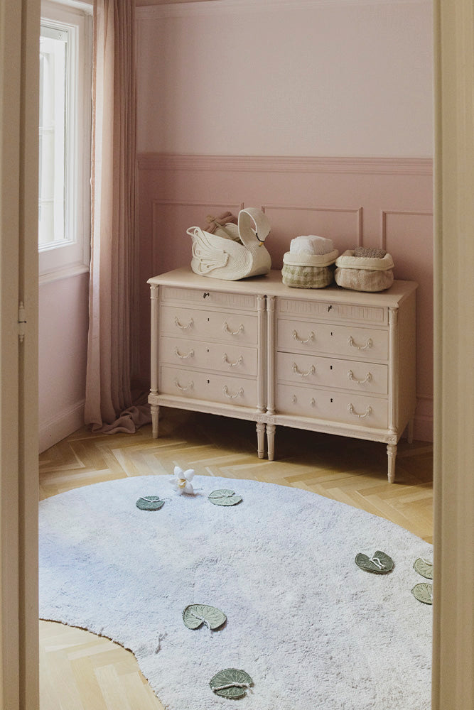 Hier is alles poëtisch, een beetje theatraal, heerlijk retro – maar altijd praktisch, wasbaar en ontworpen om mee te leven en te groeien met kinderen.