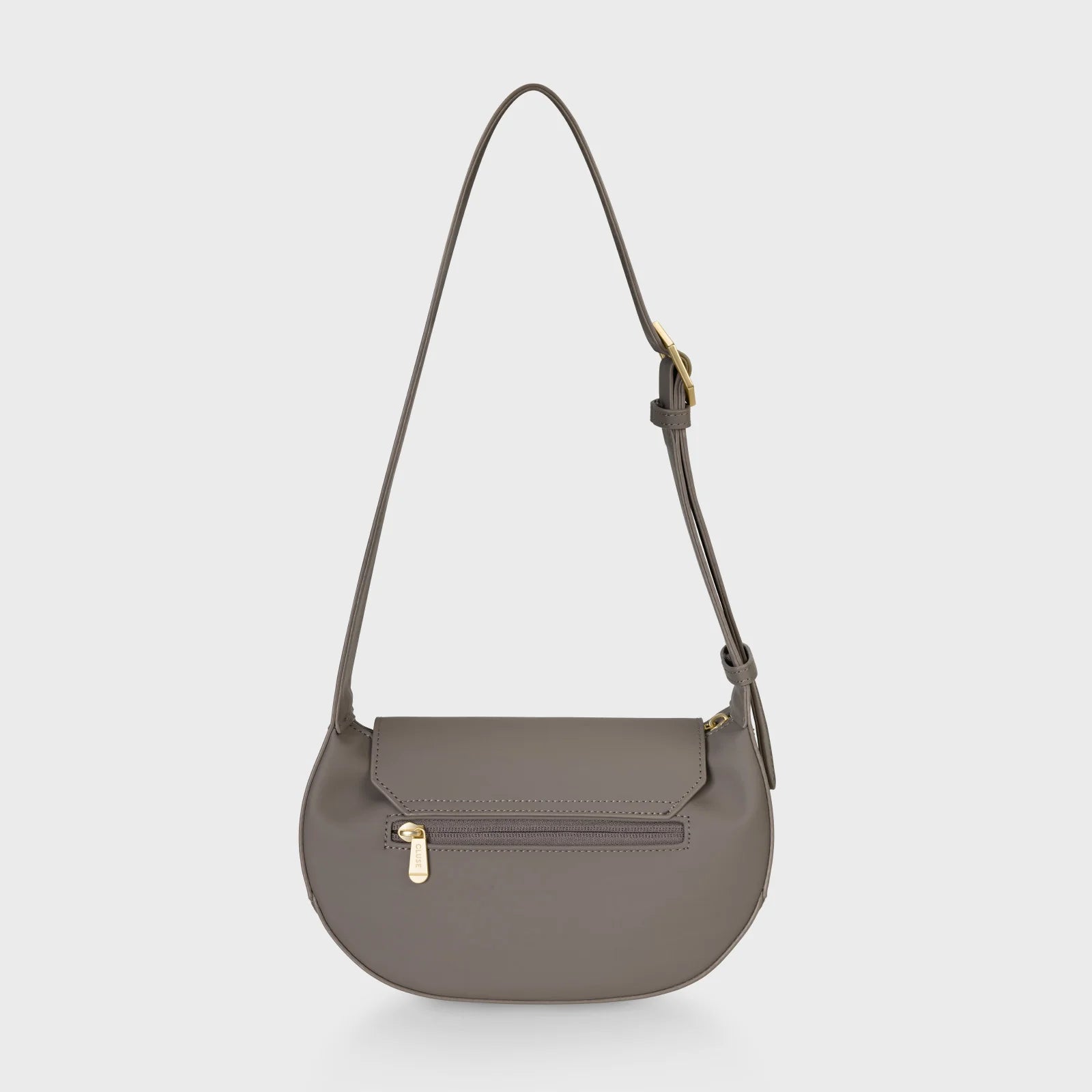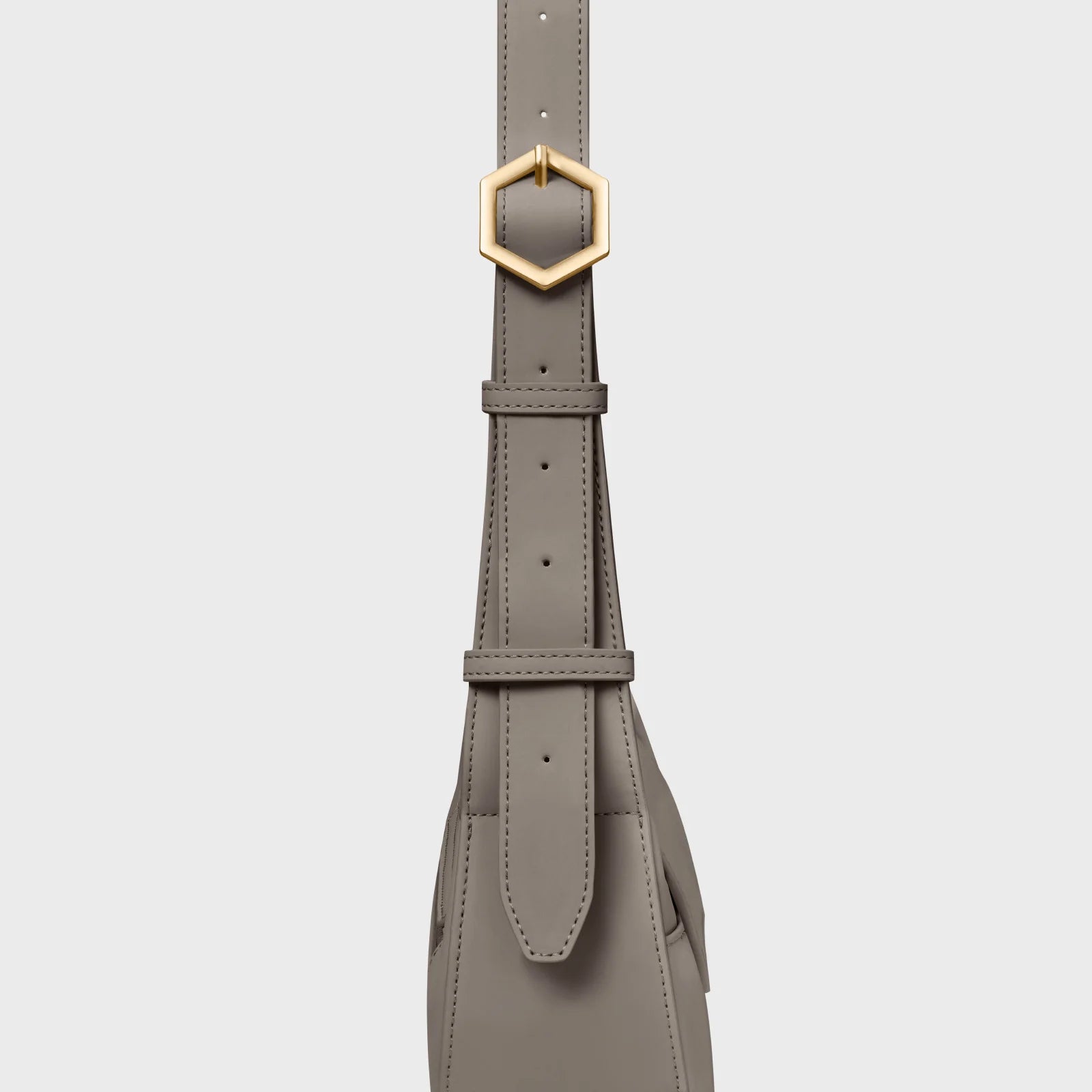 Deze tas is ontworpen om u de hele dag bij u te hebben. Hij bestaat uit een hoofdvak met ritssluiting dat wordt afgesloten met een magnetische flap, een praktisch binnenvak en twee buitenvakken: één aan de voorkant voor snelle toegang en één aan de achterkant met ritssluiting om uw essentiële spullen veilig op te bergen. Dankzij de verstelbare schouderband kunt u de tas naar wens over uw schouder of schuin over uw lichaam dragen. Dankzij de zachte beige en matte gouden details is dit een chique en discrete metgezel die u gemakkelijk kunt combineren met al uw outfits.