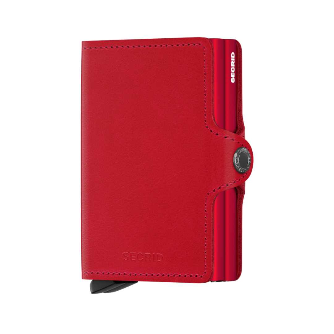 Twinwallet Secrid Original Red: Rode Europese leren portemonnee, ruimte voor 16 kaarten, RFID-bescherming, knoopsluiting, compact en stevig. (Klik op Details voor meer informatie.)