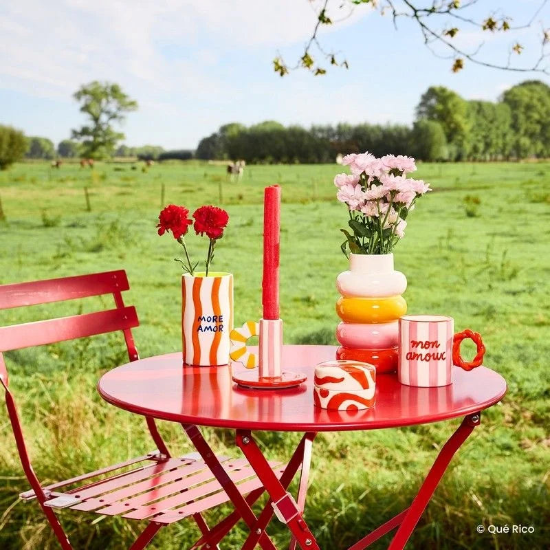 Geïnspireerd door de levendige Spaanse levensstijl en ontworpen met creatieve Belgische flair , weerspiegelt deze vaas perfect de vrolijke en kleurrijke wereld van het merk. Het Amor Del Color- motief viert kleur en voegt een stralende toets toe die direct de aandacht trekt.