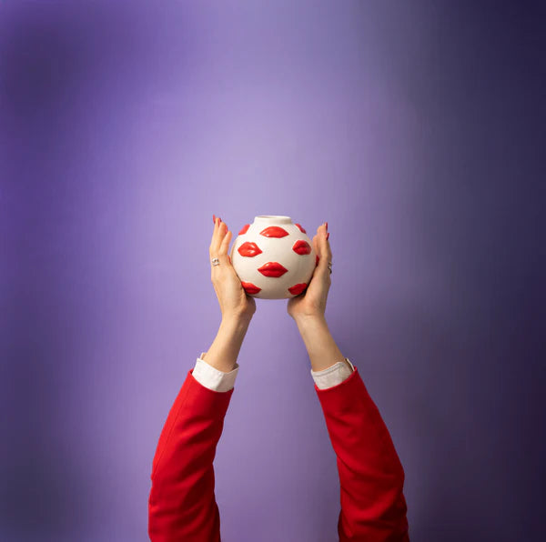 Deze ronde vaas met zijn weelderige, sensuele rode lippen belichaamt de pop-art-geest en wordt direct het middelpunt van uw interieur.