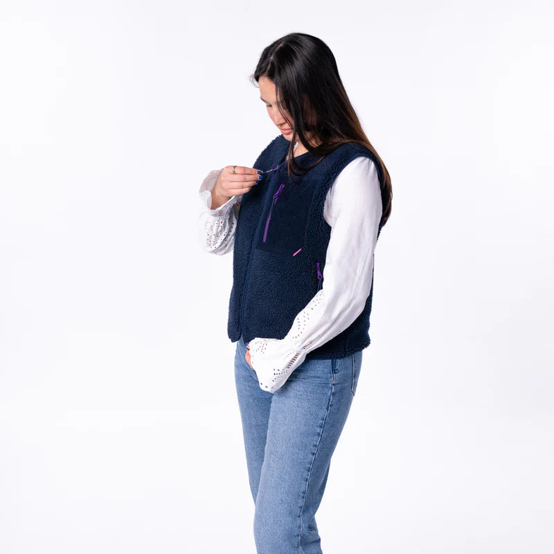 Mouwloos sherpajack met rits voor dames - Marineblauw