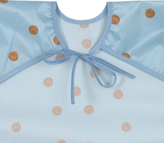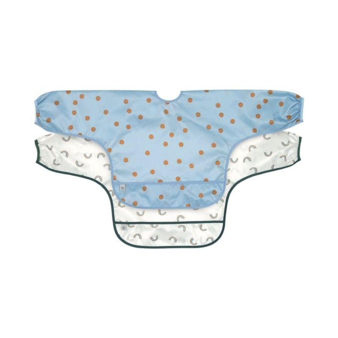Ce lot de 2 bavoirs manches longues Happy rascals bleu smile de Lassig permet aux enfants de manger en toute tranquillité sans craindre les taches !