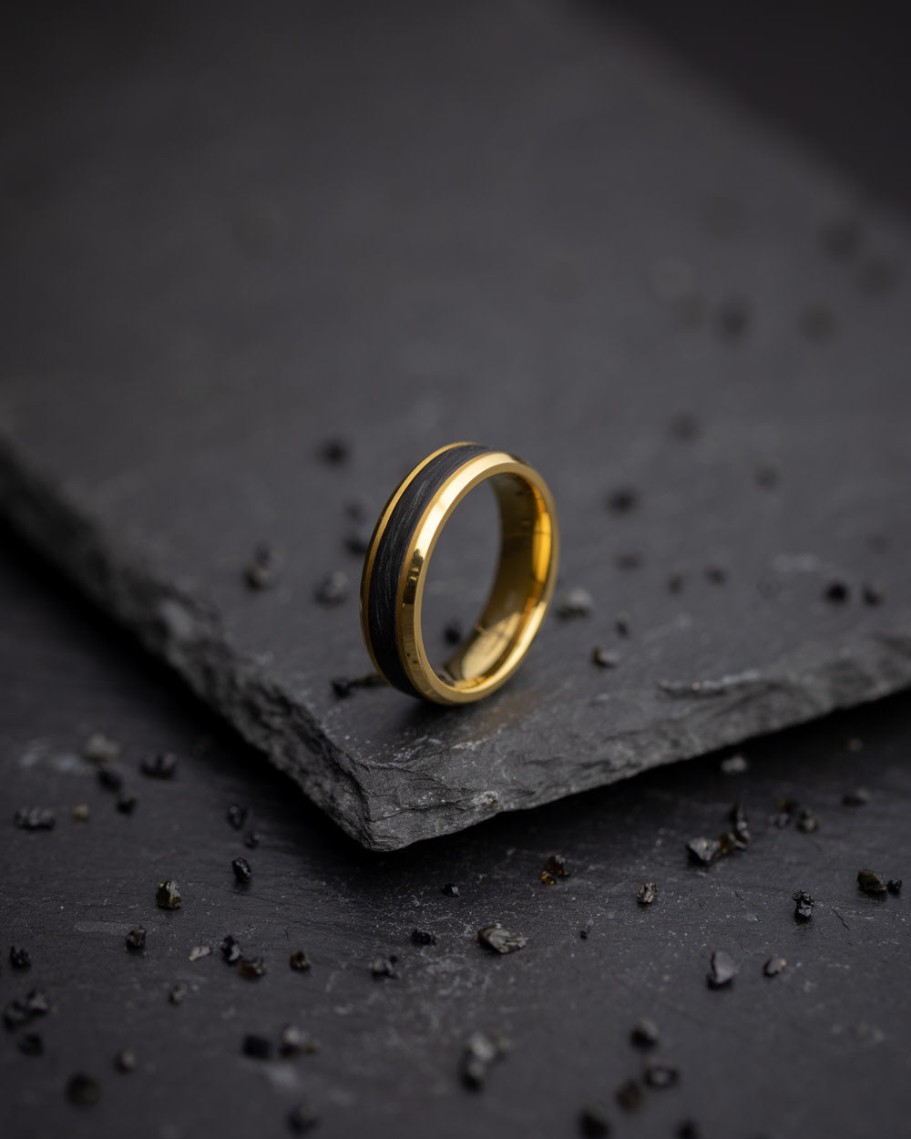 La bague Rota est fabriquée doré en titane et en carbone noir forgé. Le carbone ultra-léger permet à votre bague d'être plus légère que jamais et plus solide que l'acier.