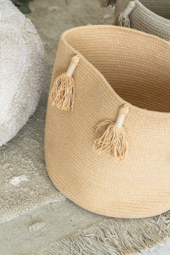 Le panier Woody est un panier de forme classique. Fabriqué en coton, il est muni de pompons décoratifs.