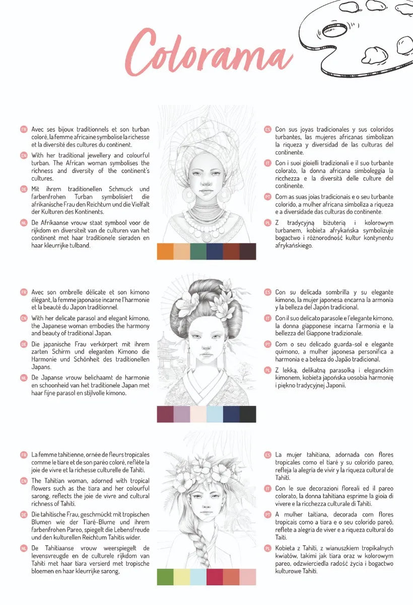 Ce carnet propose 6 magnifiques illustrations de femmes, déclinées en plusieurs exemplaires pour expérimenter différentes techniques et styles. Que vous soyez adepte de crayons, feutres, peinture ou aquarelle, chaque page devient un véritable terrain d’expression artistique. 🖌️