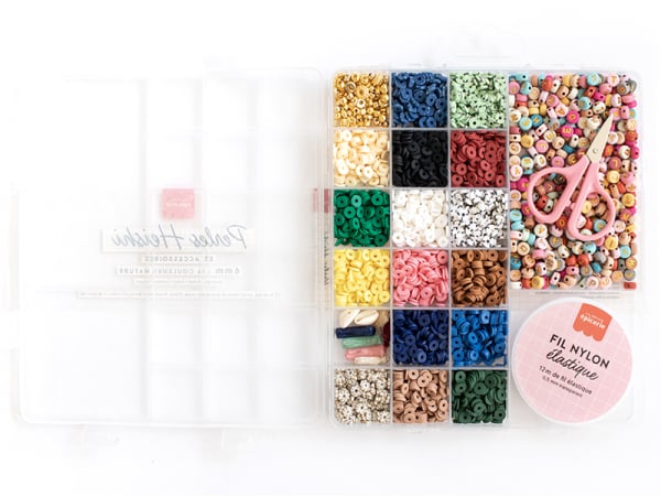 La boîte de perles heishi de La Petite Épicerie est parfaite pour emporter partout avec vous. Elle vous permettra de créer des bijoux uniques et de laisser libre cours à votre créativité, que vous soyez en vacances, dans le train ou simplement à la maison.