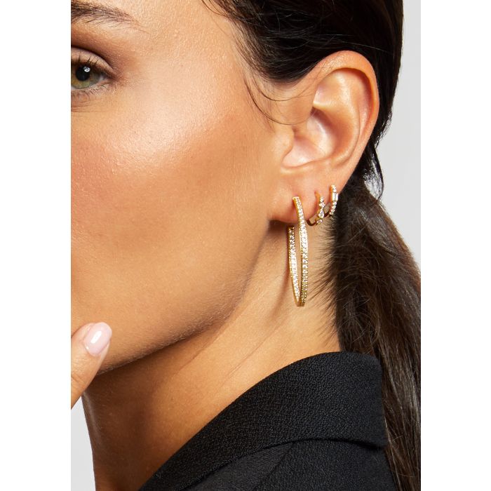Laissez-vous séduire par les créoles Stella, véritable symbole d'élégance éternelle. Subtilement ornées de pierres étincelantes à l'extérieur comme à l'intérieur, ces créoles capturent la lumière sous tous les angles pour un éclat incomparable.