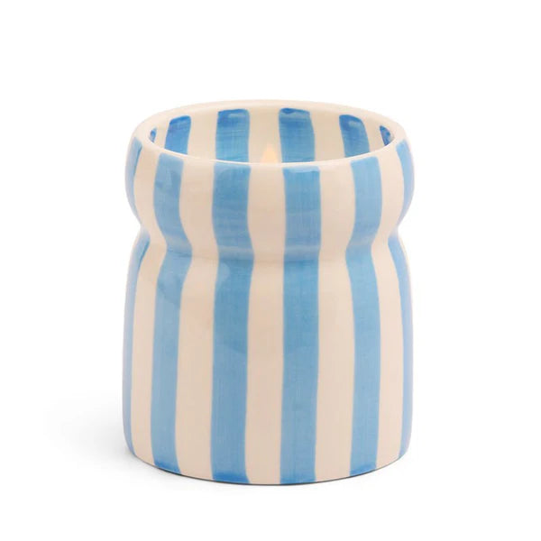 Logée dans un élégant pot en céramique rayé bleu et blanc, cette bougie de 184 g (6.5 oz) est aussi belle que parfumée. Une fois consumée, son contenant devient un superbe objet déco réutilisable.