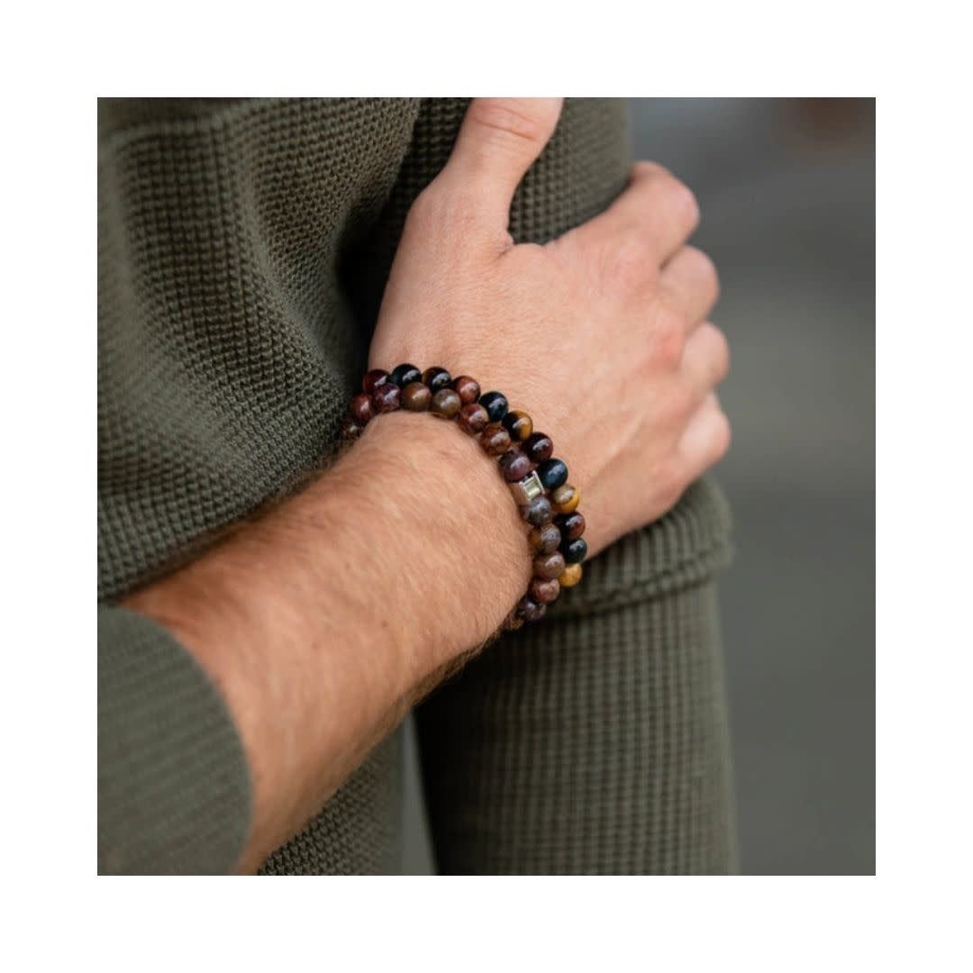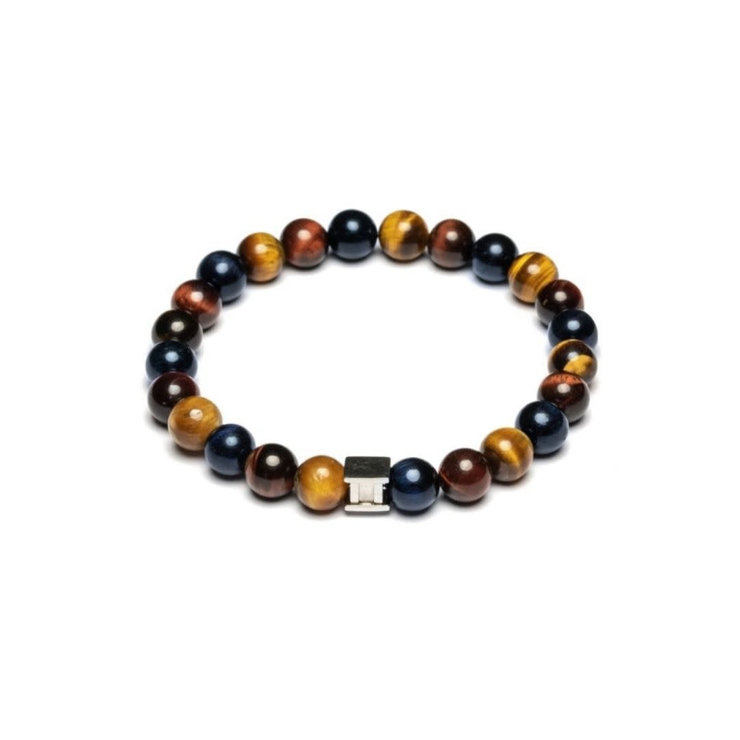 La combinaison de couleurs des perles des bracelets pour hommes Bordeaux, Dark Blue et Tiger Eye est également le point fort de ce bracelet en pierre. Vous pouvez facilement reconnaître un bracelet Gemini par le logo Gemini en acier inoxydable.