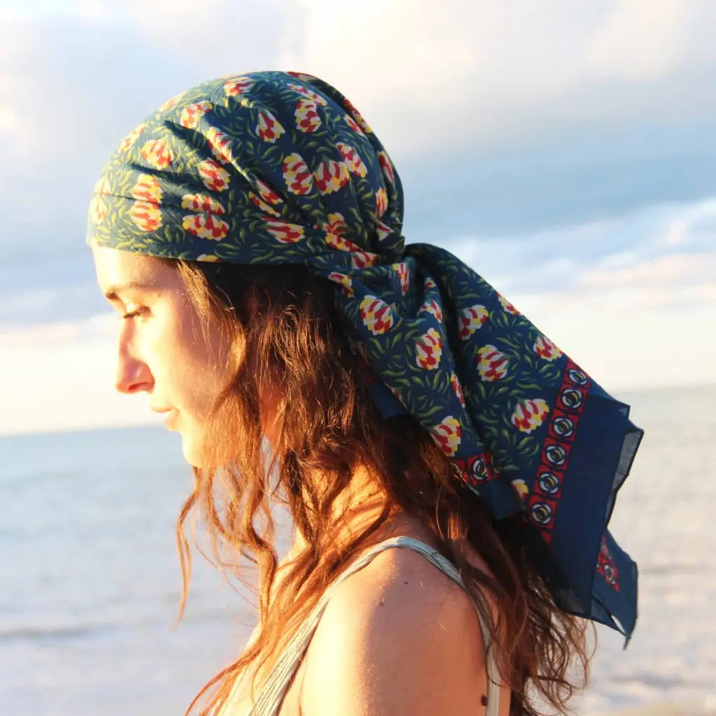 Carré en Coton Bio "Heidi" Marine – L’Alliance du Chic et de l’Authenticité