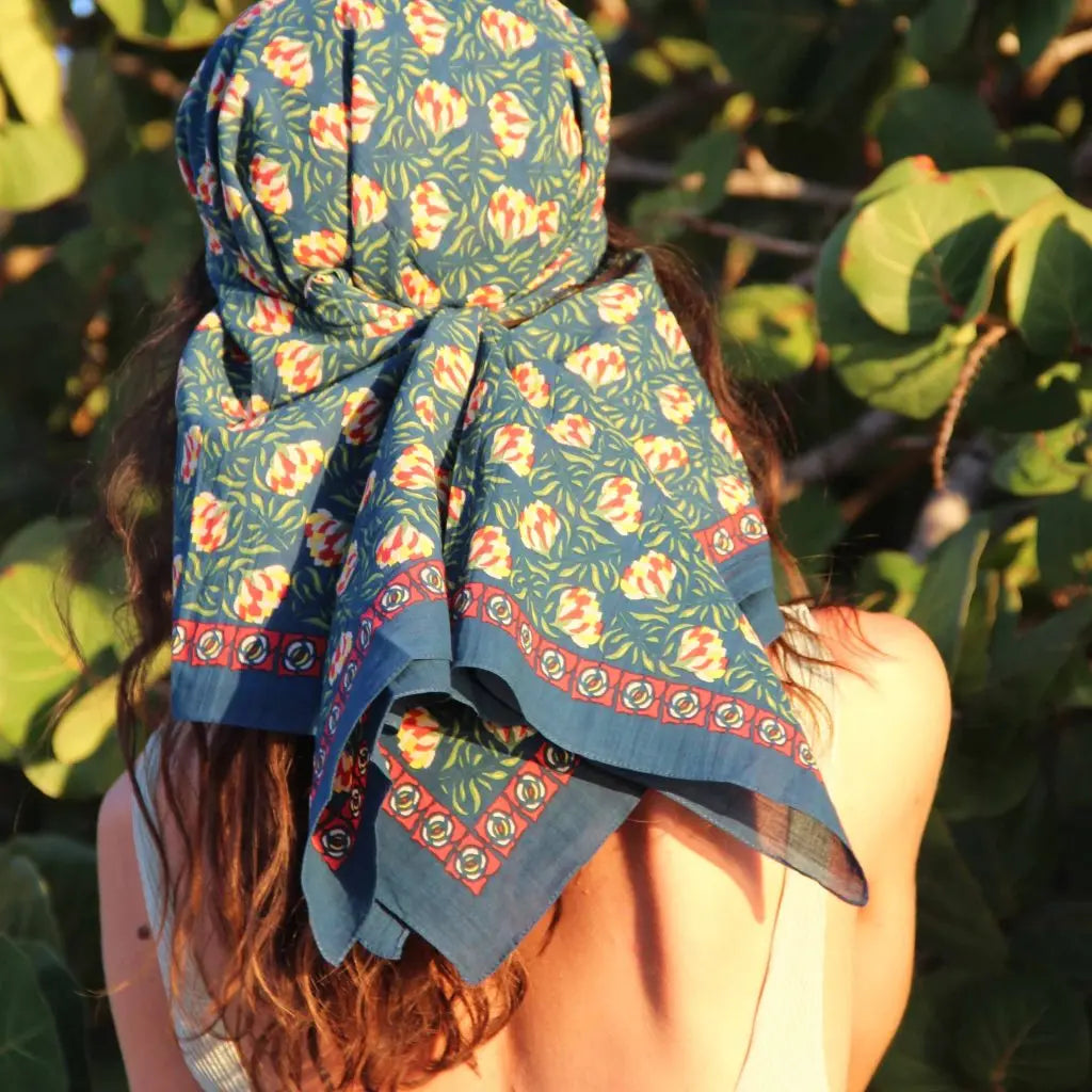 Plongez dans l’élégance intemporelle avec le carré en coton bio "Heidi" Marine de Les Belles Vagabondes. Inspiré par la nature et les motifs traditionnels, ce foulard incarne un style bohème-chic parfait pour sublimer vos tenues avec finesse.