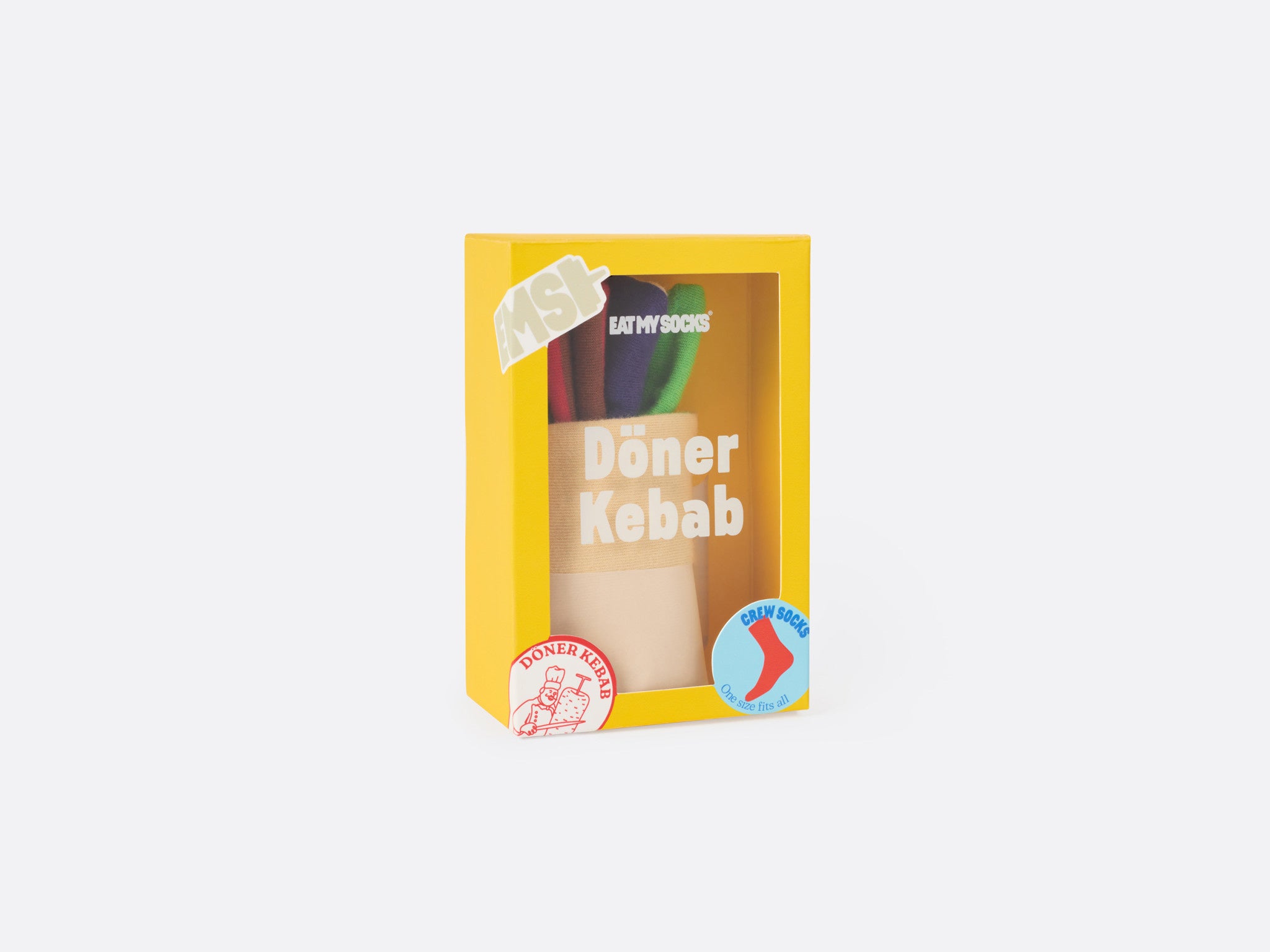 Paire de chaussettes colorées, amusantes et confortables en forme de savoureux kébab dégoulinant de légumes. Taille unique. Vendues dans un emballage amusant.