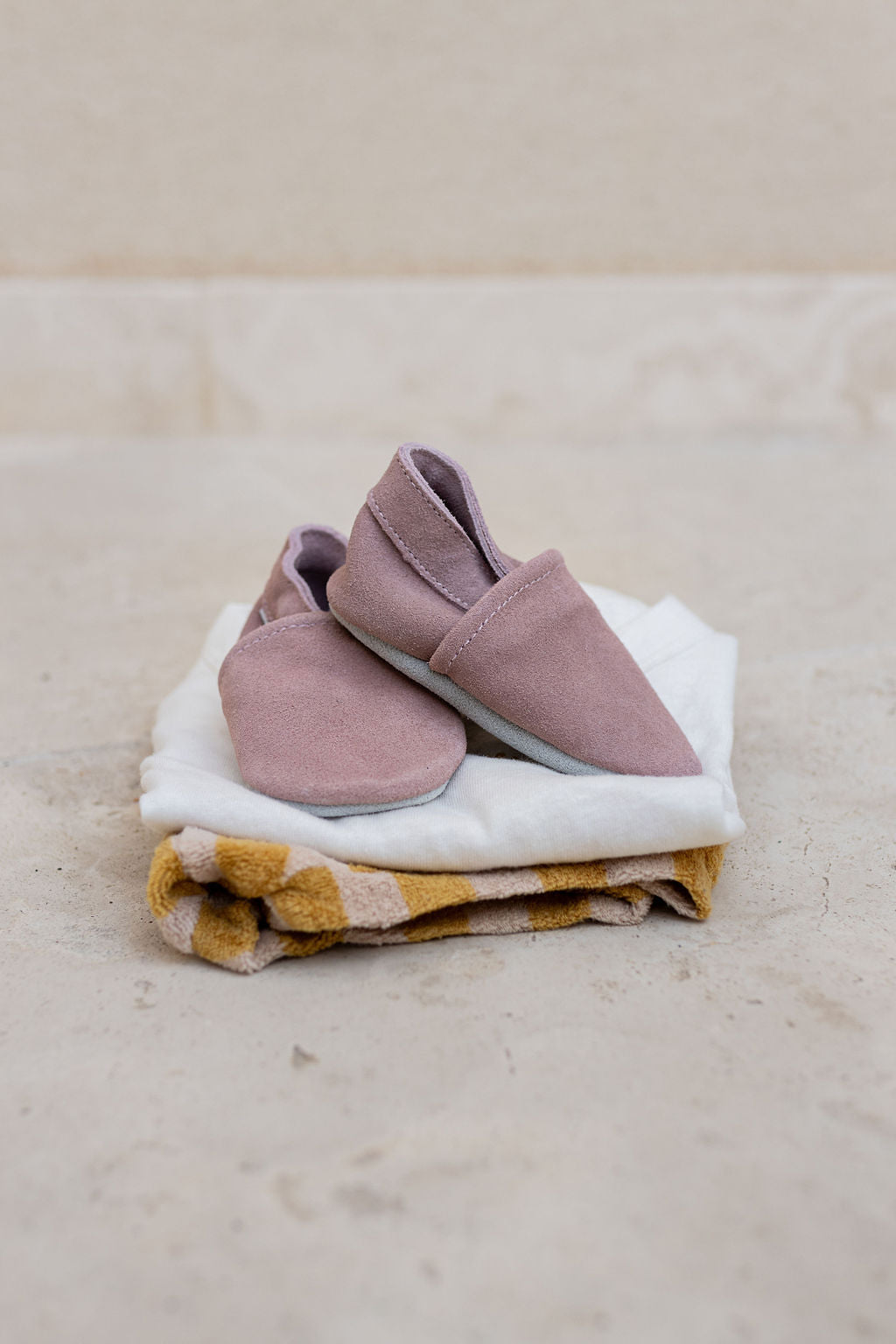 Une approche simple et réfléchie : des chaussons bien conçus, en cuir naturel, produits avec attention et pensés pour accompagner les premières découvertes de la vie.