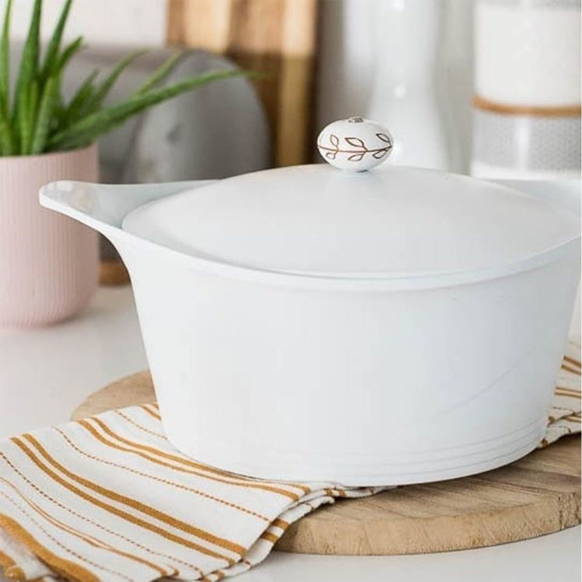 Cocotte durable, écologique et saine fabriquée en fonte d'aluminium, entièrement encapsulée dans un revêtement minéral antiadhésif résistant. Pas besoin de graisse pour cuisiner avec cette casserole. Fabriqué en sable vitrifié, le revêtement ne se décolore pas, ne se raye pas et ne se tache pas. Même les sauces les plus colorées ne l'intimident pas ! Bien qu'elle soit compatible avec le lave-vaisselle, le revêtement permet de la laver facilement à la main.