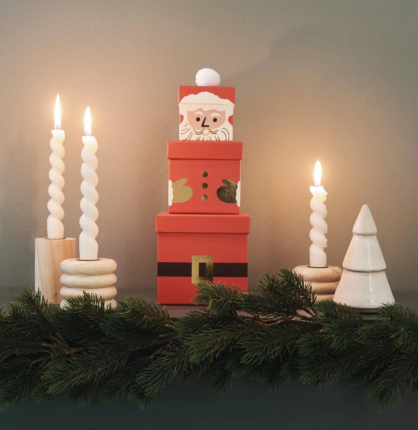 Empilées selon leur taille, les trois boîtes se transforment en un adorable Père Noël en 3D, parfait pour surprendre et ravir vos proches. Un set idéal pour des emballages créatifs et festifs à Noël.