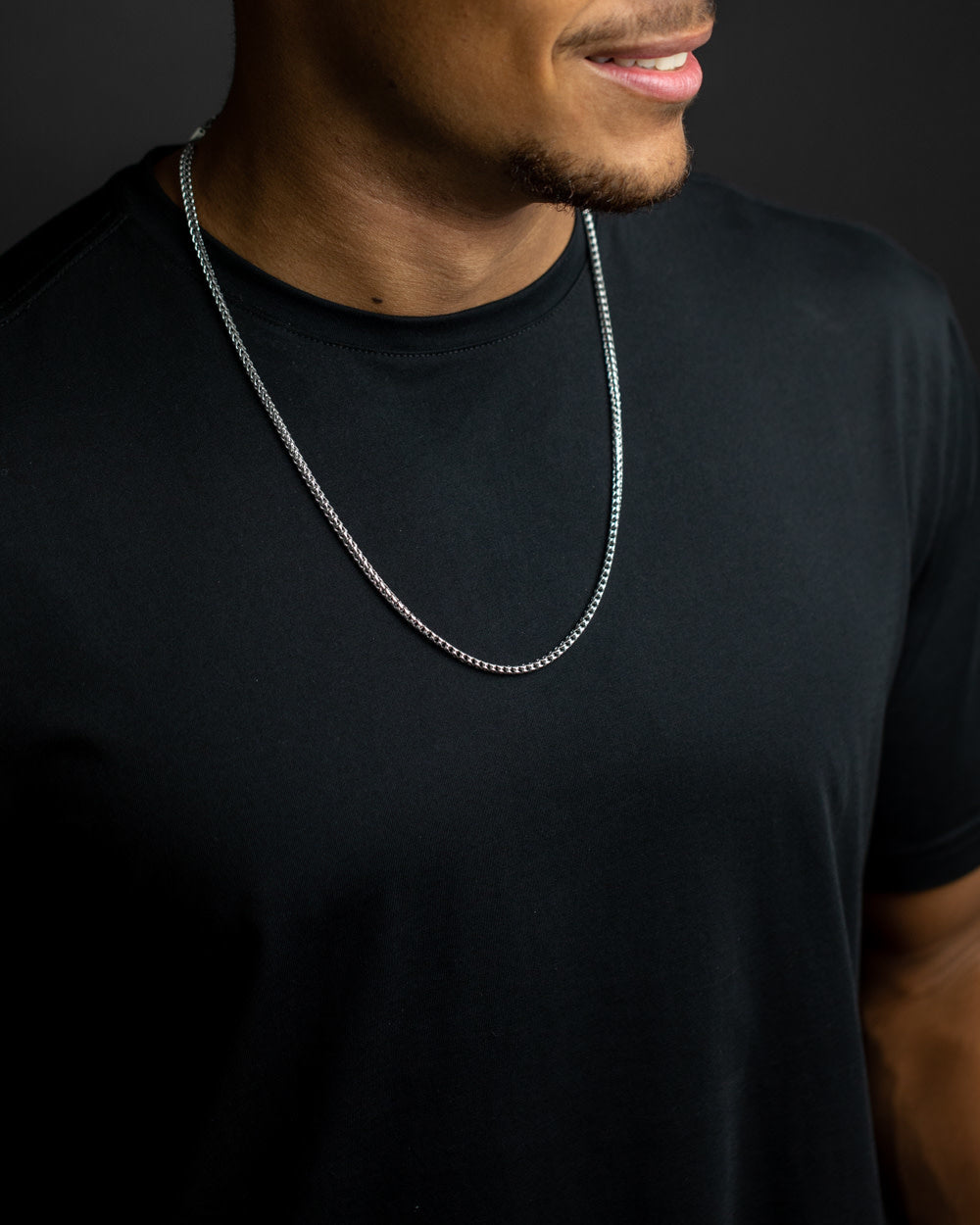 La chaîne est fabriquée en acier inoxydable 316L de haute qualité. La longueur de la chaîne est de 54 cm et une chaîne d'extension de 10 cm est incluse avec chaque collier.