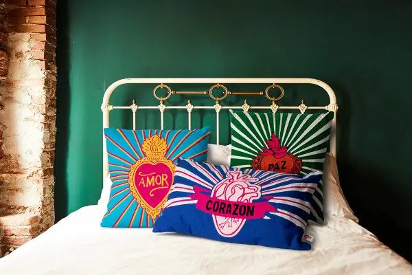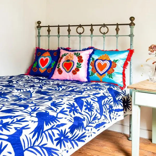 Un véritable bijou textile qui insuffle une âme chaleureuse et colorée à votre décoration, tout en évoquant la passion et la protection symboliques des cœurs Milagros.