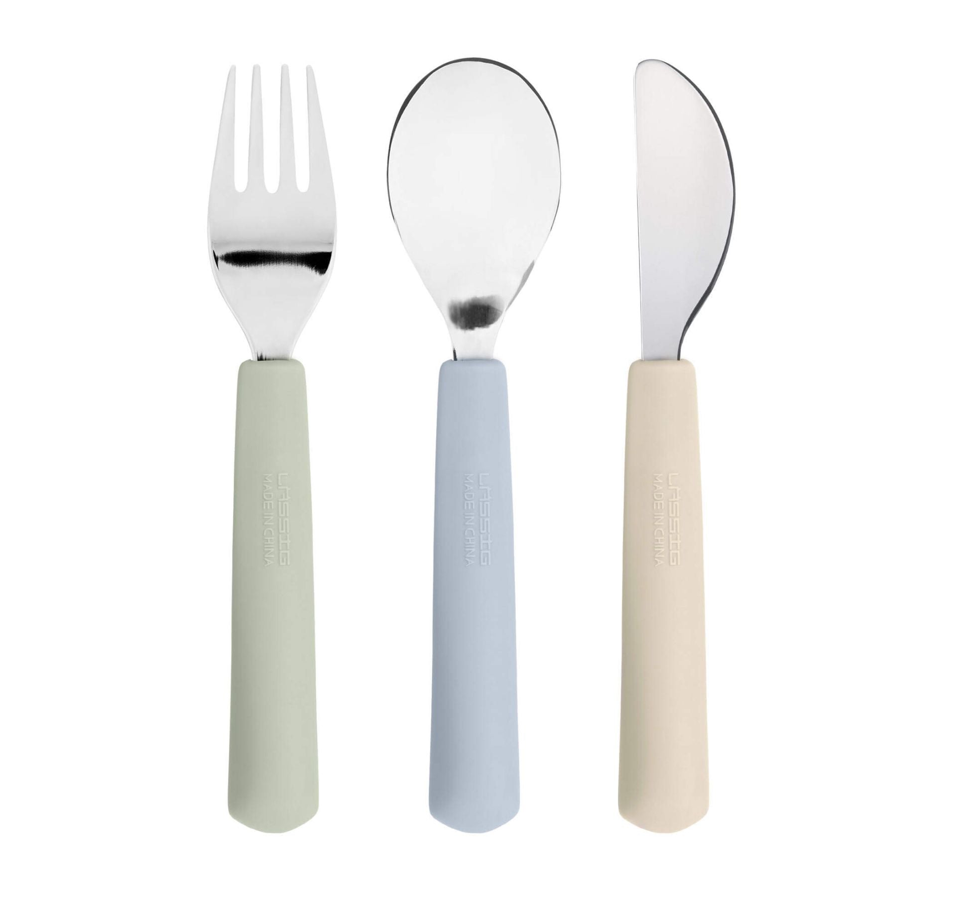 Avec ces couverts pour enfants LÄSSIG en acier inoxydable sans BPA et dotés de manches ergonomiques en silicone au design Happy Fruits Lemon, les tout-petits apprennent à manger seuls plus facilement. Ce set pratique est compatible avec le lave-vaisselle.
