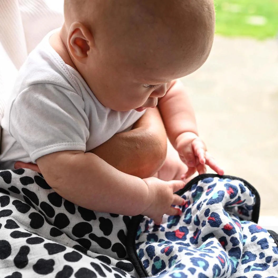 đŸ–€ Deux motifs Ă©volutifs : Dalmatien (0-4 mois) pour stimuler la vision des nouveau-nĂ©s, puis LĂ©opard bleu (5+ mois) pour capter l’attention des bĂ©bĂ©s plus grands.