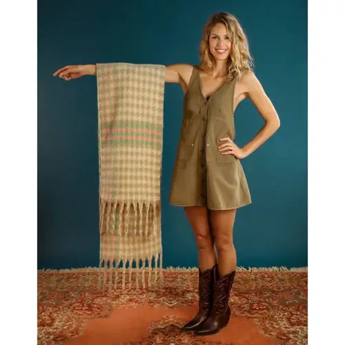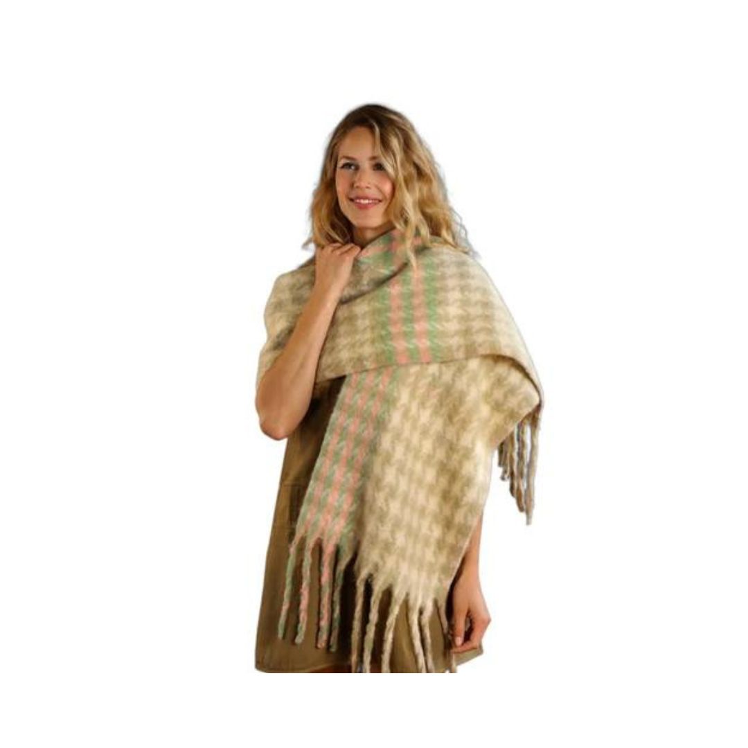 Cette superbe écharpe est exactement ce dans quoi vous voulez vous envelopper, et nous adorons le motif pied de poule intemporel ! Epaisse et chaude, c'est un must have de l'hiver !
