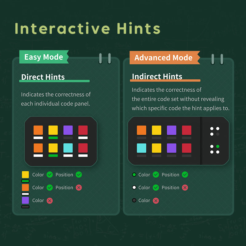Le principe ? Décoder un code couleur secret à quatre chiffres avant la fin des sept tentatives. Entre logique, mémoire et déduction, chaque partie devient un véritable duel d’intelligence — contre vos amis… ou contre la machine !