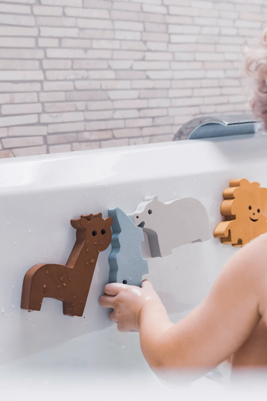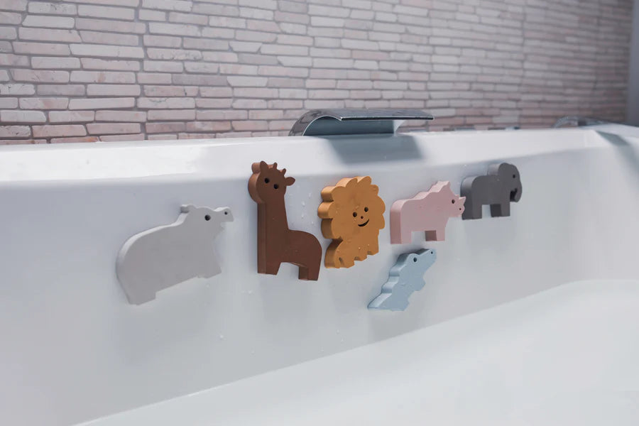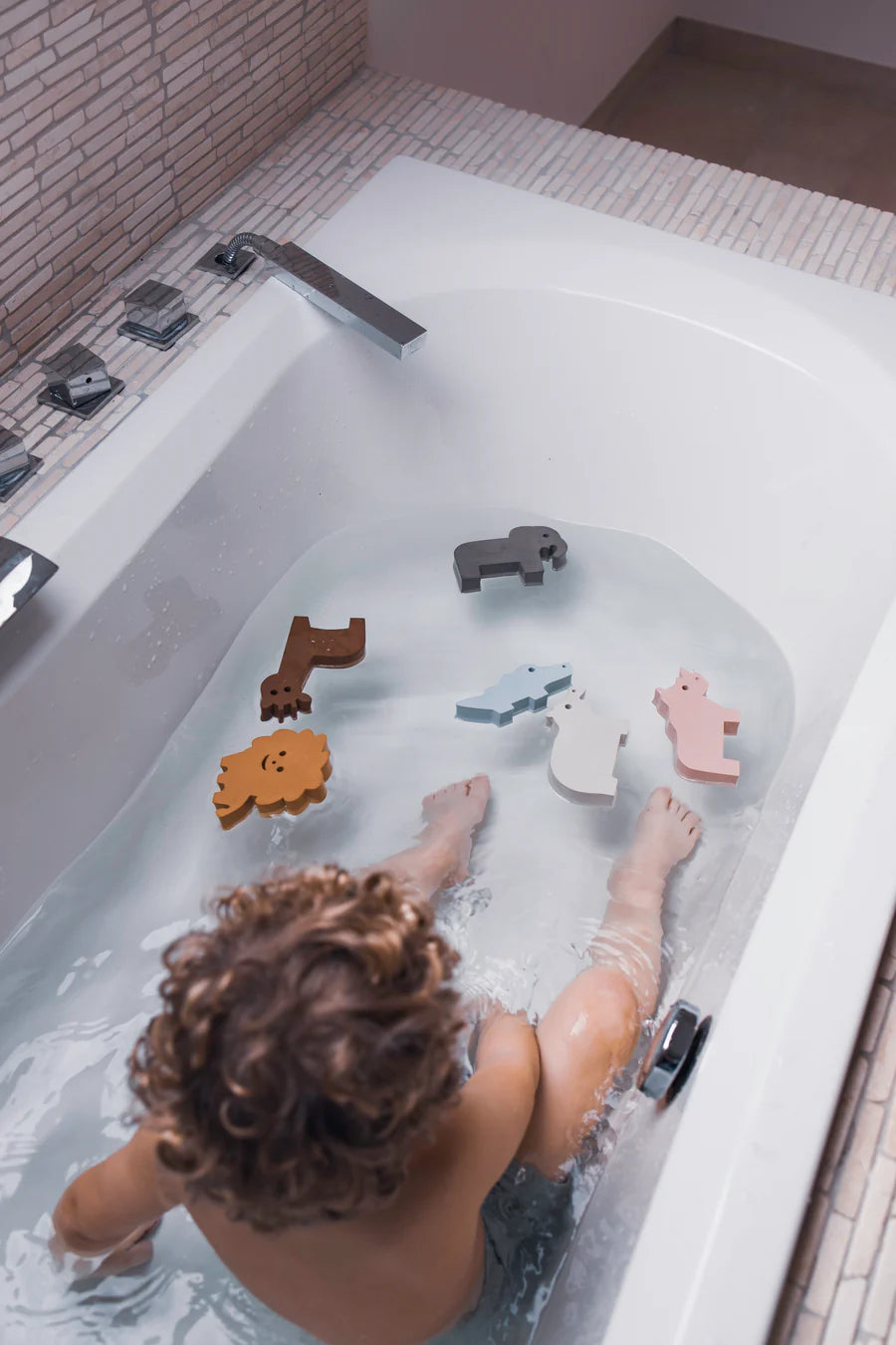 🦁 Tous à l’eau ! Le lion, l’hippopotame, le rhinocéros, la girafe, le crocodile et l’éléphant sont là pour mettre l’ambiance ! Ces animaux en mousse EVA toute douce flottent, collent aux parois et s’empilent pour créer un radeau de la jungle. À utiliser dans le bain, la piscine ou même sur le sable à la plage… L’aventure ne s’arrête jamais ! 🏖️