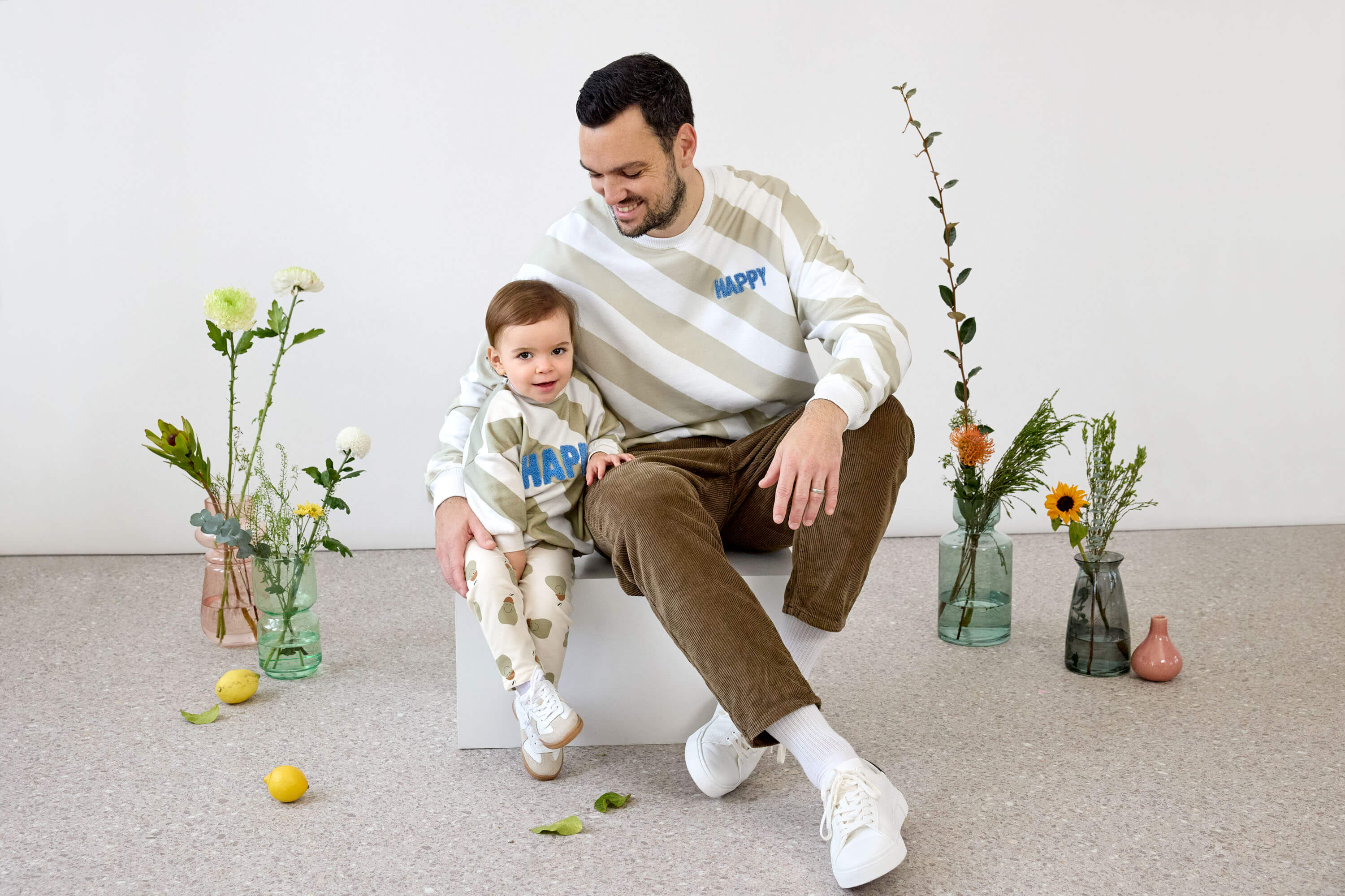 Kids Sweat - Happy blanc cassé/ kaki clair