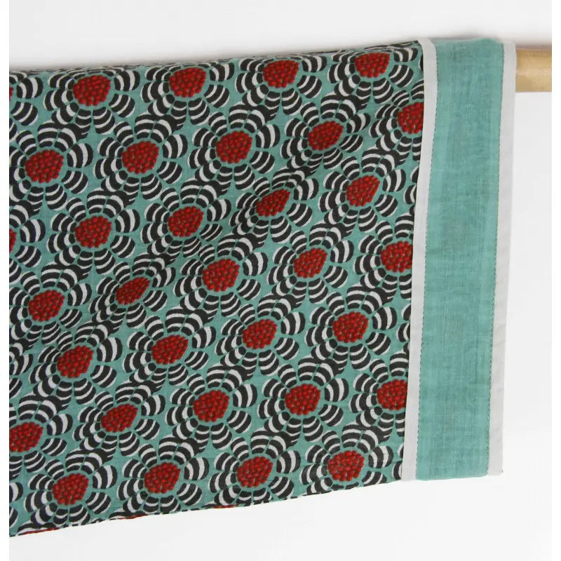 Chaque modèle est dessiné à la main en France puis imprimé artisanalement en Inde, selon des techniques traditionnelles qui révèlent des motifs délicats et des couleurs profondes. Le bleu intense, sublimé par l’inspiration tournesol, apporte une touche élégante et naturelle à votre tenue.