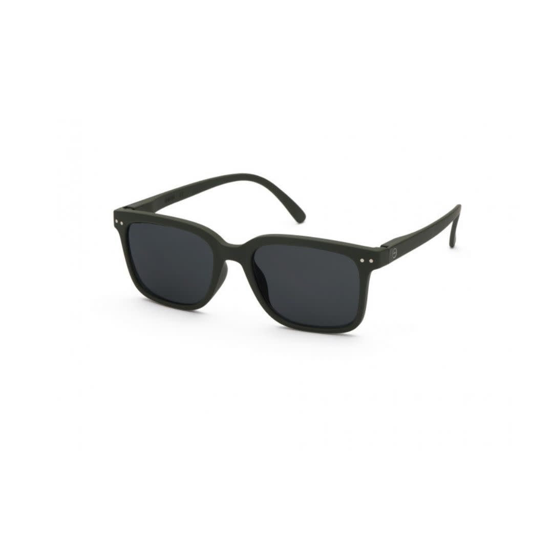 Lunettes de soleil kaki d'Izipizi de qualité, légères et confortables : branches flexibles, toucher caoutchouc. Indispensables pour un usage quotidien.