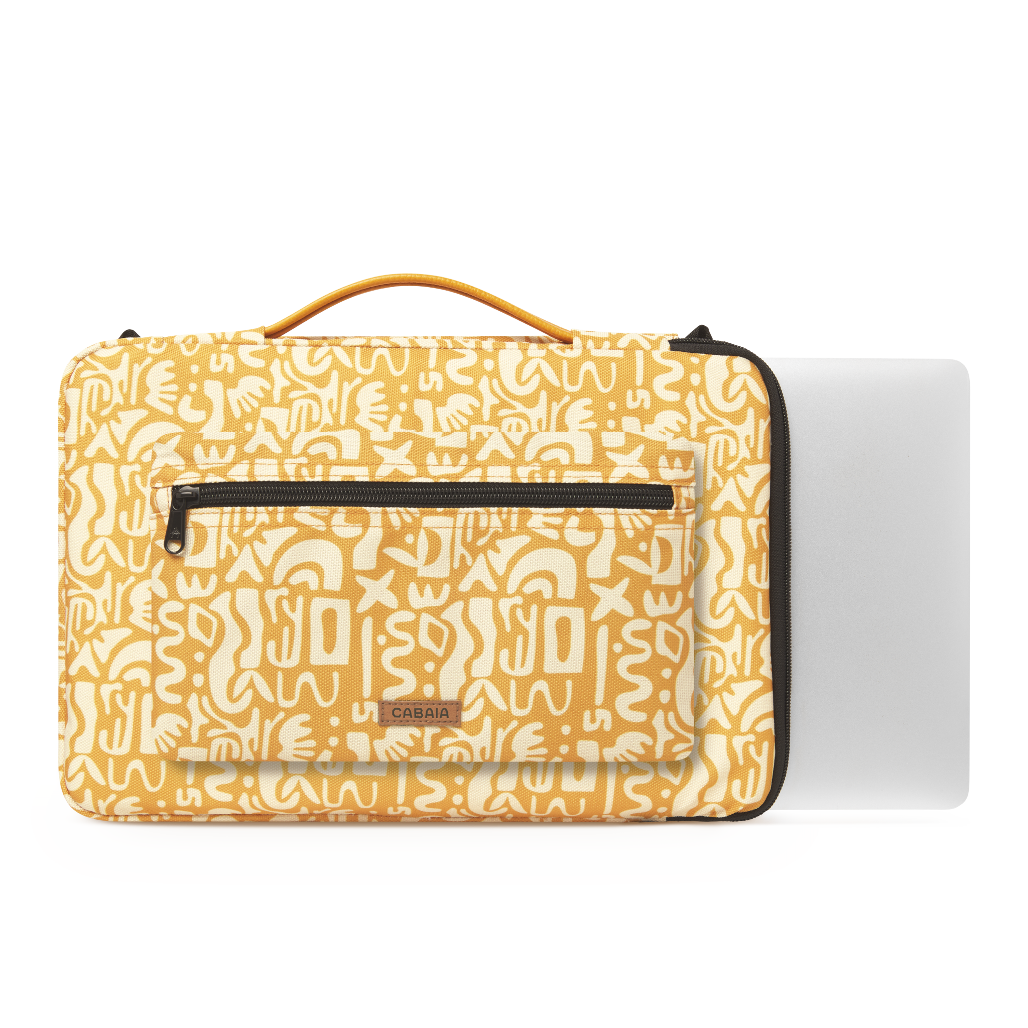 La nouvelle housse pour ordinateur Cabaïa est dotée d'une poche frontale interchangeable, parfaite pour mettre le chargeur de l'ordinateur et ne pas dépendre d'un deuxième sac.