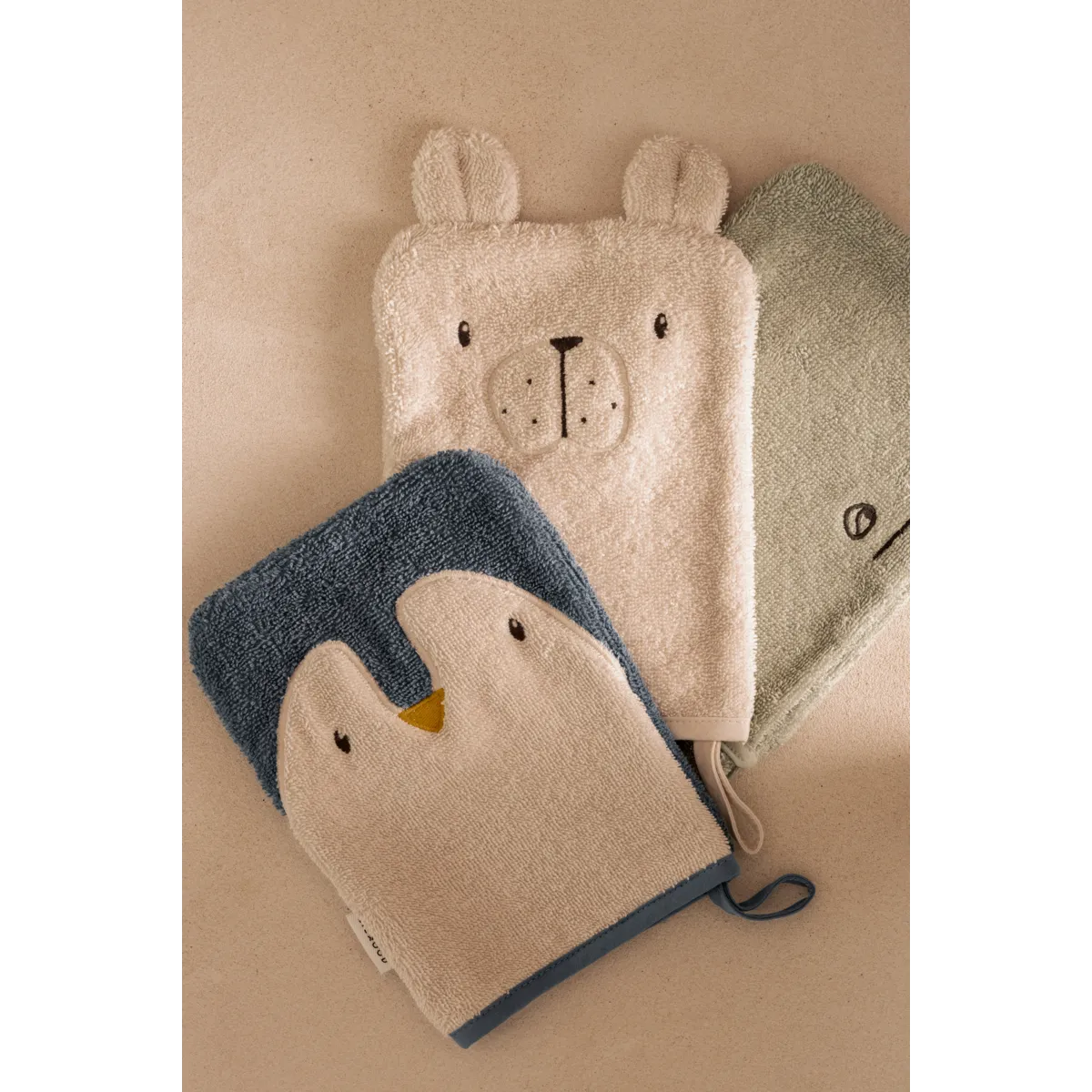 Avec leurs adorables têtes d’animaux et leur texture toute douce, les gants de toilette Sylvester de Liewood rendent l’heure du bain plus fun et plus tendre. À la fois gant de toilette et petite marionnette, ils accompagnent les enfants dès le plus jeune âge dans leur routine du bain.