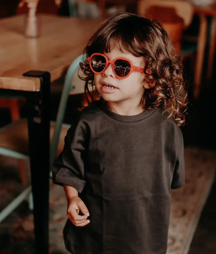 Lunettes de soleil unisexes bicolores pour enfants de la marque Hello Hossy. Lunettes rondes au style intemporel.