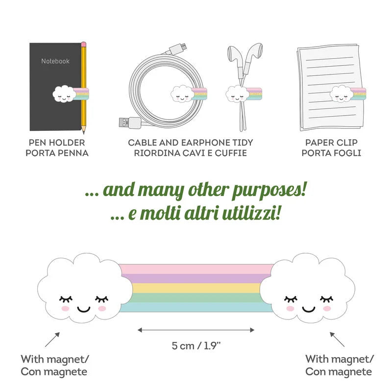 Pour rassembler des câbles, fixer un stylo à votre carnet ou empêcher vos écouteurs de s'emmêler... ce clip magnétique vous permettra de ranger vos objets favoris avec facilité.