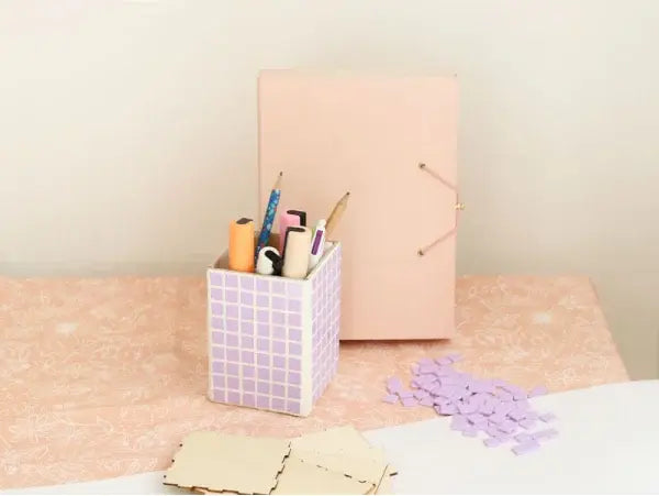 Le Kit Mon Vase en Mosaïque vous permet de reprendre une technique très à la mode qu'est la mosaïque . Il vous permet de créer un vase ou un pot à crayon dans une couleur tendance.