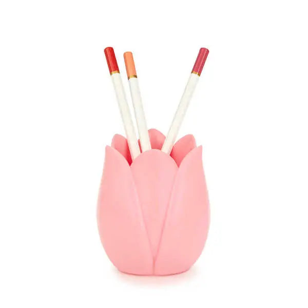 Ajoutez une note de couleur et de charme Ă votre espace de travail avec le pot Ă crayons Tulip Rose de Balvi.