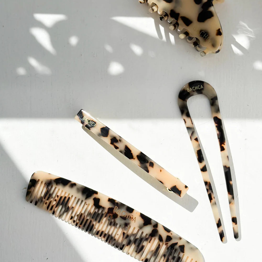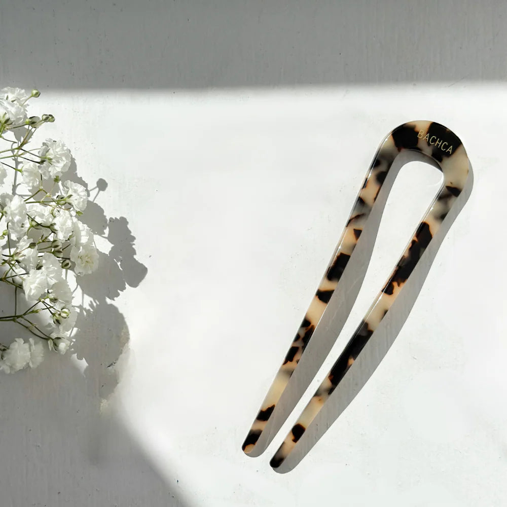 Ce pic à chignon en écaille est l’allié des matins pressés comme des soirées stylées. Avec ses deux tiges fines, il maintient la coiffure avec légèreté et élégance, sans jamais casser ni tirer les cheveux. Résultat : un geste simple, une allure assurée.
