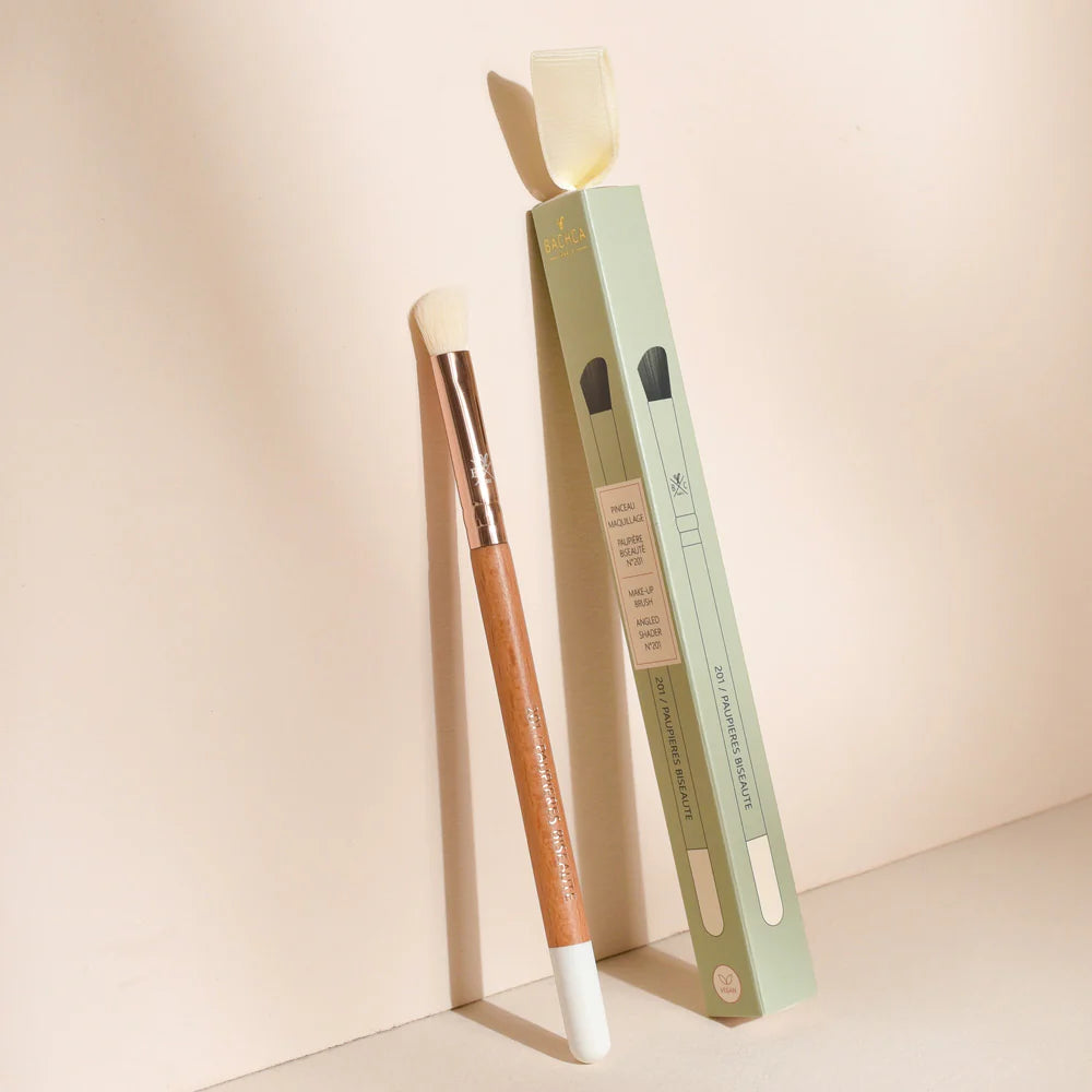 Le pinceau à paupières biseauté est l'outil essentiel pour structurer et définir votre regard. Avec ses poils inclinés, denses et doux, il permet une application précise des fards, que ce soit dans le creux de la paupière ou le long des cils.