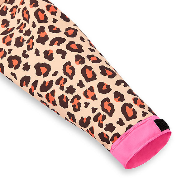 Un look sauvage même sous la pluie 🐆 Le poncho Leopard #6 mixe l’imprimé léopard iconique avec une grande poche rose flashy. Résultat : un style affirmé et fun, même quand le ciel fait grise mine.