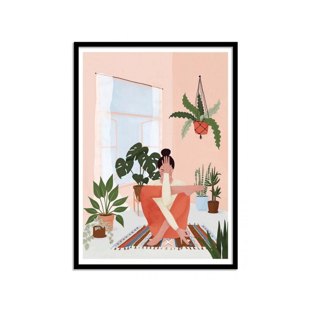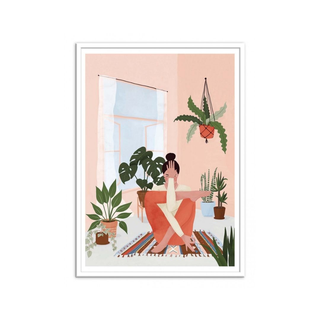 L'illustratrice Maja Tomljanic capture des moments de vie de femmes. Ces portraits du quotidien invitent à prendre soin de soi et apportent équilibre et sérénité à votre décoration. Ici : une séance de Yoga entourée de plantes vertes.