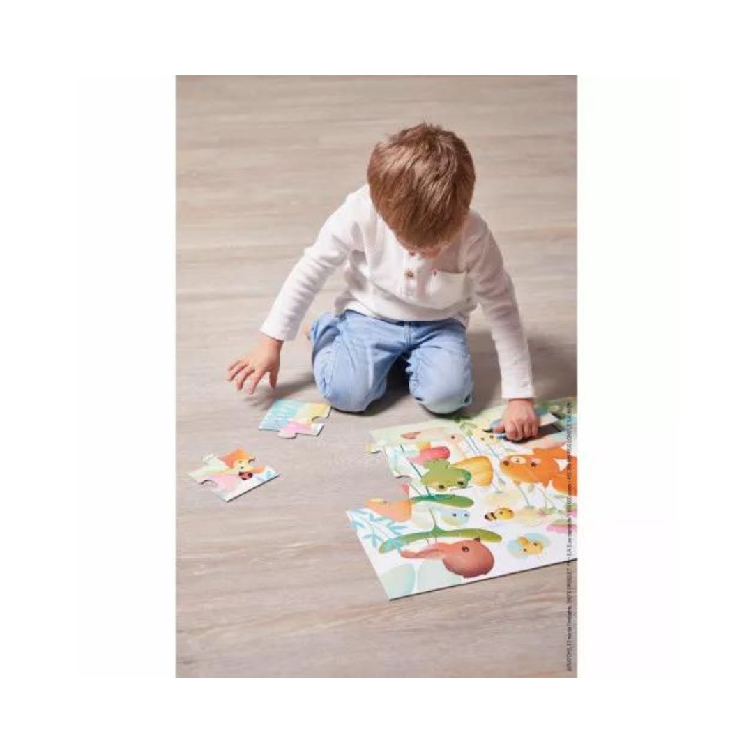 Un joli puzzle de 20 pièces, pour les petits dès 2 ans, et qui se range bien proprement dans sa valisette. C'est parti pour assembler les amis du jardin !